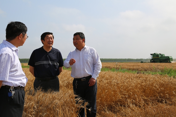 6月7日,蘇墾農(nóng)發(fā)股份公司總裁胡兆輝一行到寶應(yīng)湖檢查指導(dǎo)三夏工作,寶應(yīng)湖農(nóng)場(chǎng)黨委書記魏軍民、副總經(jīng)理夏永龍陪同檢查。