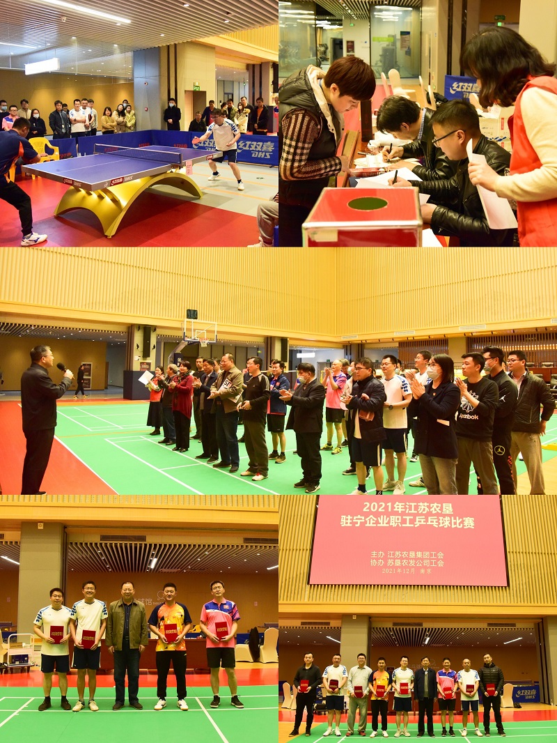 • 12月17日,由江蘇農墾集團有限公司工會主辦,蘇墾農發公司工會協辦的2021年江蘇農墾駐寧企業職工乒乓球比賽在蘇墾大廈職工活動中心圓滿落幕。集團公司黨委委員、工會主席楊義林出席活動并講話。集團公司工會副主席姚海洪主持活動,共有11家駐寧企業單位32名選手在此次男子單打比賽中揮拍競技,一決高下。蘇墾農發乒乓球隊共派出8人參賽,其中2人斬獲冠軍和3人奪得季軍。