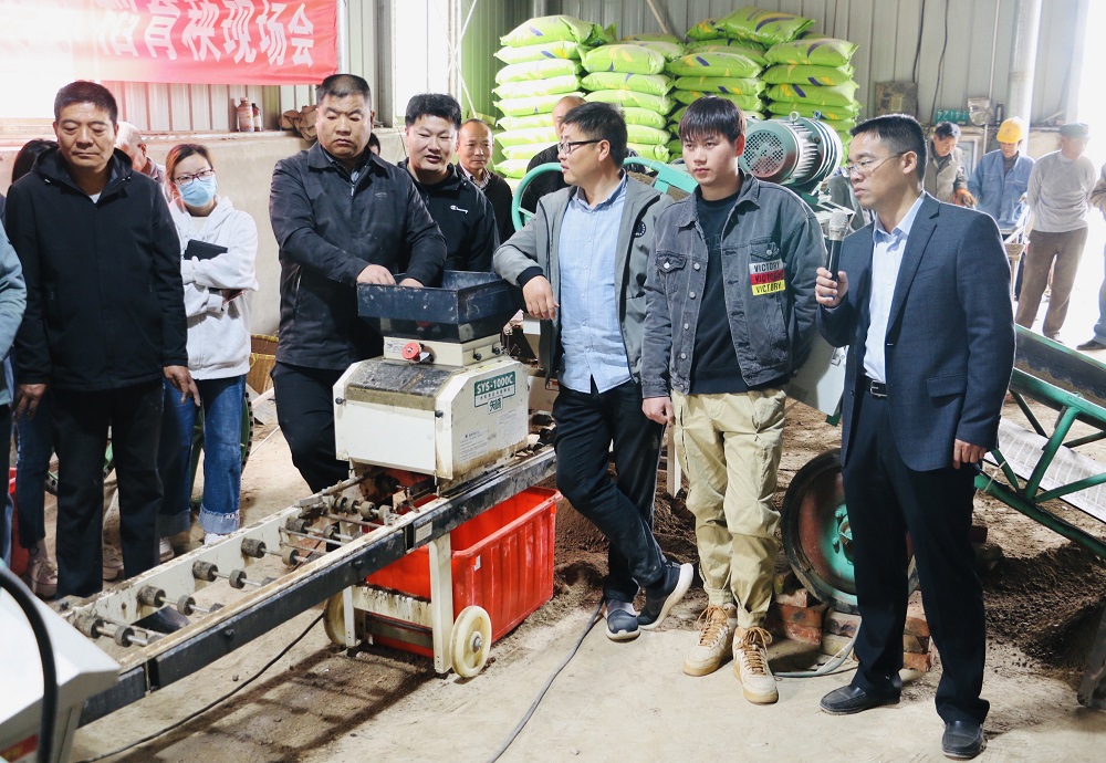 針對(duì)東壩頭2022年水稻育秧全局工作,滕金平提出“充分準(zhǔn)備、周密調(diào)試、確保質(zhì)量”十二字方針。他強(qiáng)調(diào),當(dāng)前,育秧大幕已經(jīng)拉開,開弓沒有回頭箭、一播無法再后悔,決不用犧牲質(zhì)量換取成本。一要做足充分準(zhǔn)備,密切關(guān)注天氣變化和疫情形勢(shì),各農(nóng)業(yè)大隊(duì)做好每日育秧準(zhǔn)備工作(含拌種、操作流程和營(yíng)養(yǎng)土基質(zhì)等水份),以“開局決定全局”的氣魄踐行高質(zhì)量育秧行動(dòng);二要狠抓周密調(diào)試,做好農(nóng)機(jī)具設(shè)備特別是新機(jī)型的調(diào)試,同時(shí)吸取往年經(jīng)驗(yàn)教訓(xùn),緊盯9日-22日育秧黃金期,保障育秧全過程零失誤、無差錯(cuò);三要確保質(zhì)量。樹牢“質(zhì)量是育秧的關(guān)鍵”思想不動(dòng)搖,確保質(zhì)量到環(huán)節(jié),一日即決定千畝大田秧苗質(zhì)量,切實(shí)狠抓大隊(duì)間、批量間和每日間的質(zhì)量平衡,堅(jiān)持打勝育秧質(zhì)量關(guān),為奪取今年水稻(超)高產(chǎn)夯實(shí)堅(jiān)實(shí)的基礎(chǔ)。