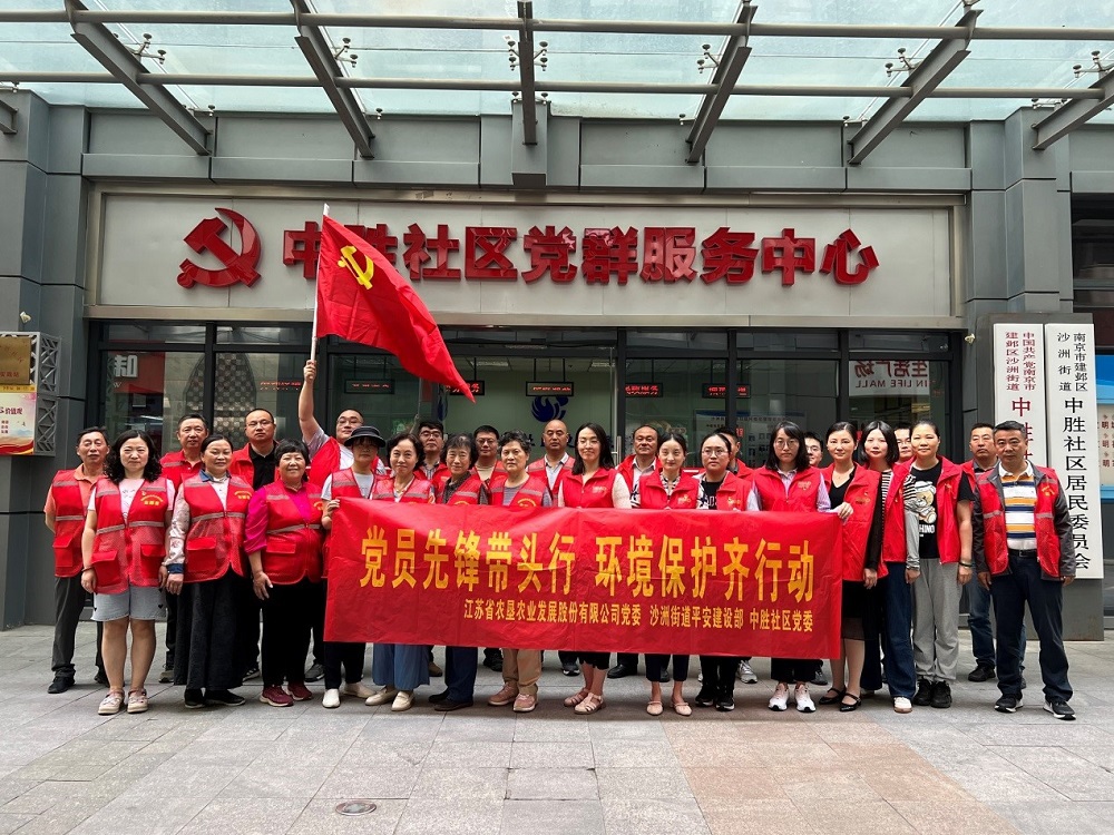 •        6月8日,圍繞開展學習貫徹習近平新時代中國特色社會主義思想主題教育、全面貫徹黨的二十大精神、深入貫徹習近平總書記生態文明思想,南京市建鄴區沙洲街道平安建設部、沙洲街道中勝社區黨委、江蘇省農墾農業發展股份有限公司黨委聯合開展“黨員先鋒帶頭行,環境保護齊行動”主題黨日活動。
