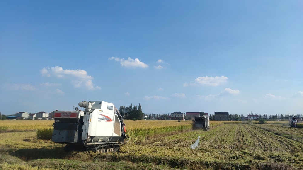 秋風掠過,稻浪滾滾,在蘇州蘇墾陸家園區生產基地,七八臺收割機正馬力全開,在田間來回穿梭,收割、脫粒一氣呵成,伴隨著機器陣陣轟鳴聲,蘇州蘇墾今年的秋收秋種工作全面展開。