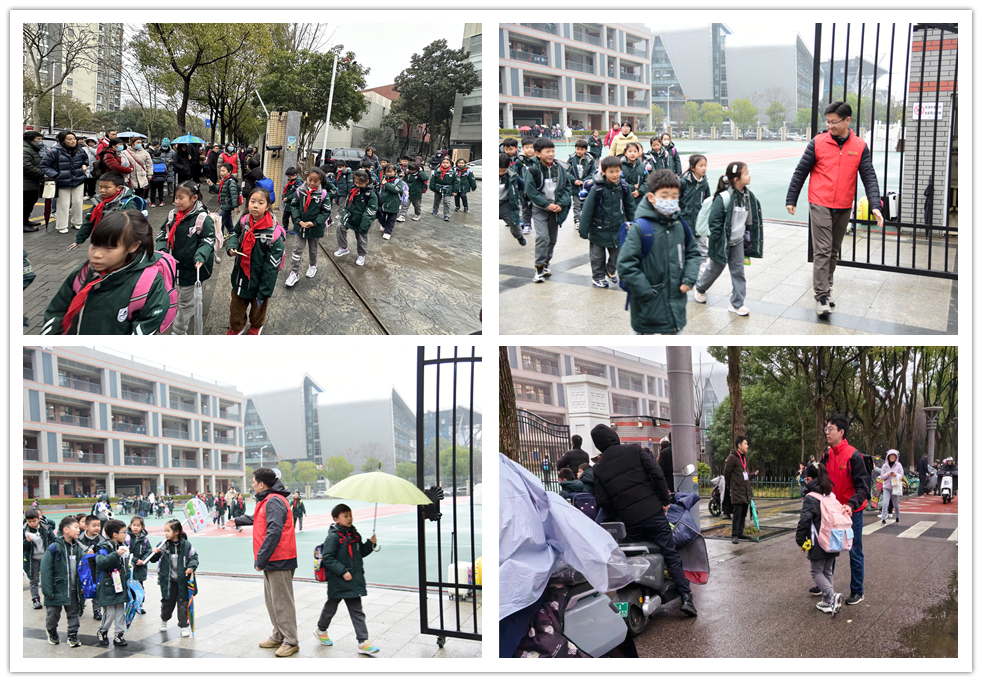用心“護(hù)學(xué)”,為愛(ài)“站崗”。每到上學(xué)、放學(xué)高峰期,南師大附屬中學(xué)新城小學(xué)、金陵中學(xué)河西分校小學(xué)部的校門(mén)口都很擁堵,車(chē)流量大,來(lái)往人員眾多。活動(dòng)當(dāng)日,志愿者們不畏嚴(yán)寒早早來(lái)到校園門(mén)口,開(kāi)展“護(hù)學(xué)崗”志愿服務(wù),疏導(dǎo)學(xué)校周邊的車(chē)輛和人員,提醒接送孩子的家長(zhǎng)不要扎堆,引導(dǎo)放學(xué)的孩子到安全區(qū)域行走,時(shí)刻提醒騎電動(dòng)車(chē)、摩托車(chē)的家長(zhǎng)注意雨天行車(chē)安全,確保學(xué)校周邊交通安全有序,為師生、家長(zhǎng)的安全出行筑起一道“綠色”通道。