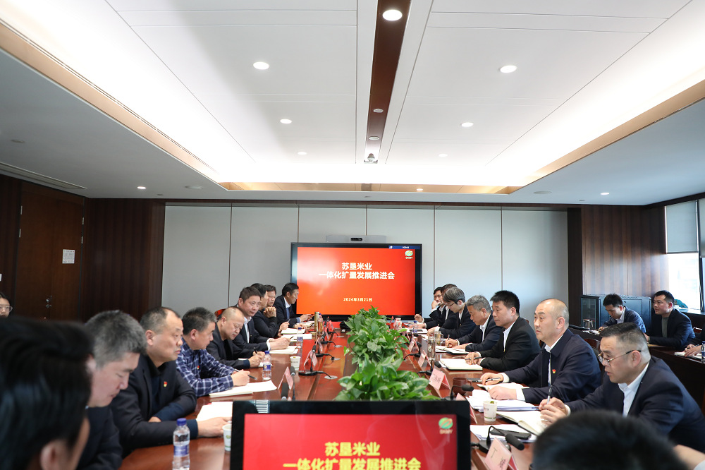 •        3月21日,蘇墾米業(yè)在總部召開一體化擴量發(fā)展推進會。會上10家分子公司就當前一體化擴量糧食回購工作做了詳細匯報。公司一體化領導小組成員等相關人員出席會議。
