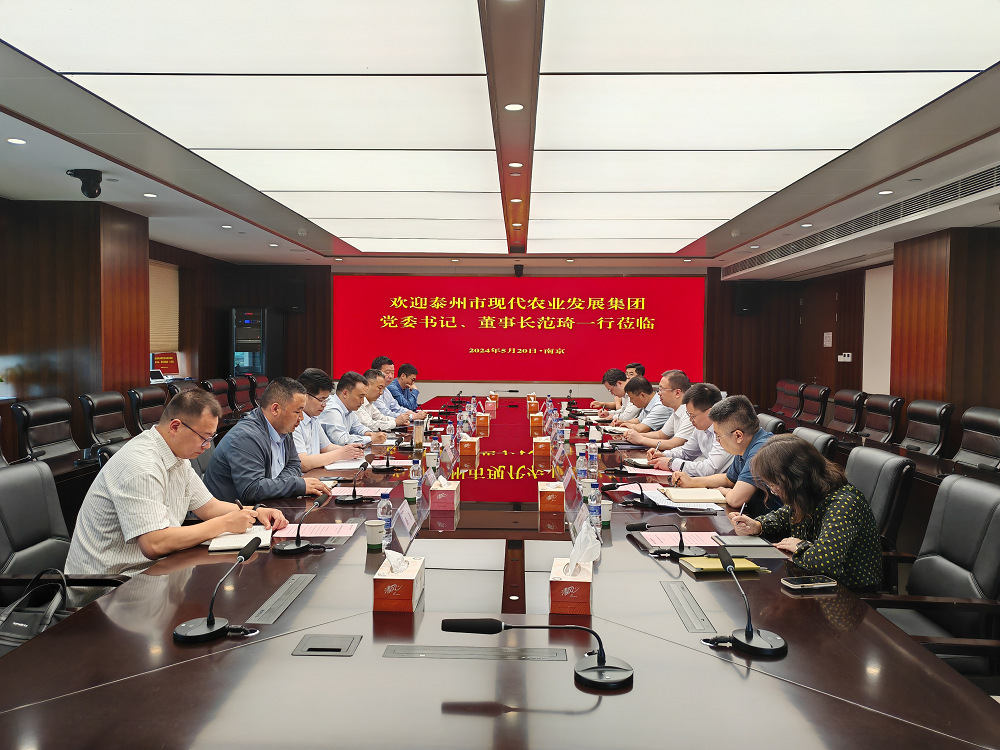 •        5月20日,泰州市現代農業發展集團黨委書記、董事長范琦一行到蘇墾農發考察交流。集團黨委委員,蘇墾農發總裁丁濤出席座談會。