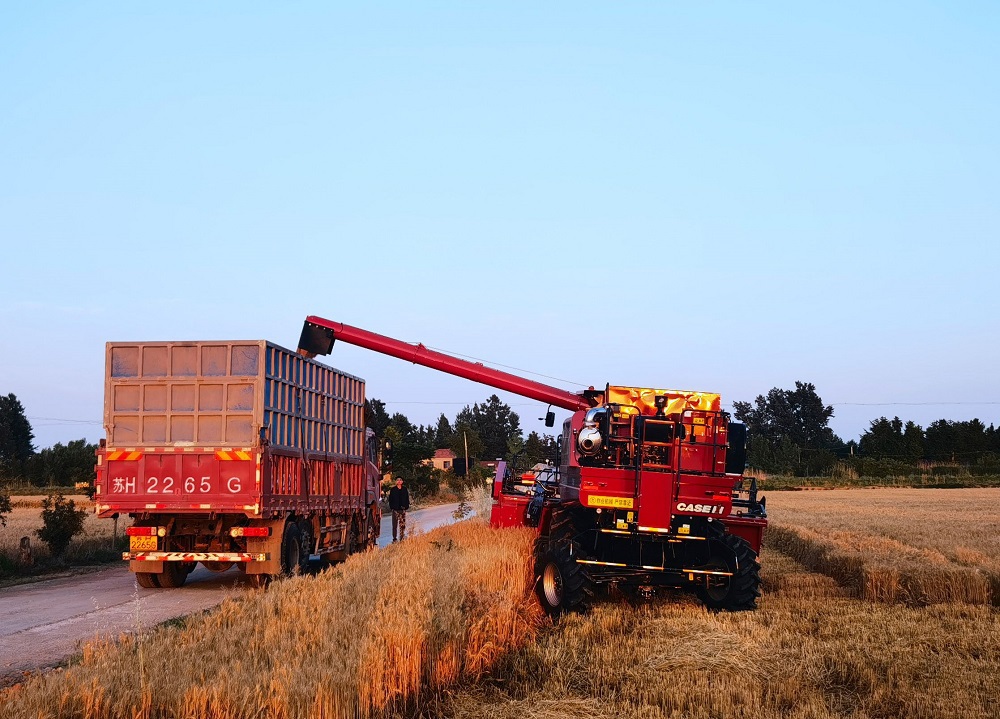 凱斯4099收割機喜開寶應湖麥收“第一鐮”