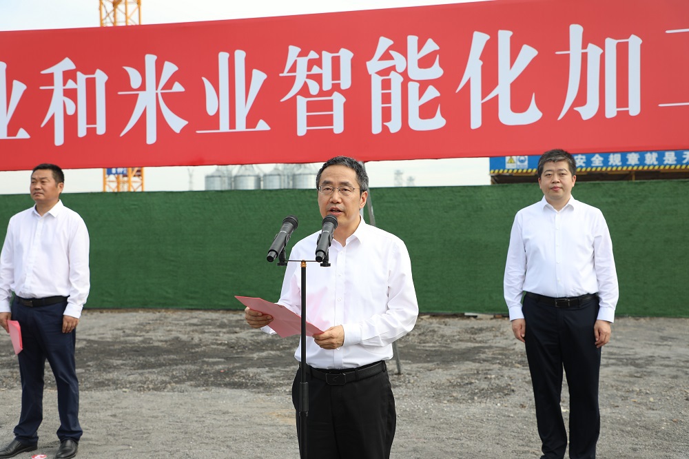 吳本輝在致辭中指出,海門(mén)對(duì)于江蘇農(nóng)墾有著特殊的意義,這里是農(nóng)建四師北上屯墾的出發(fā)地,也是墾地合作的先行區(qū),誕生了全國(guó)農(nóng)墾系統(tǒng)改革先鋒——江心沙農(nóng)場(chǎng)。多年來(lái),墾地雙方在圍墾江灘、發(fā)展農(nóng)業(yè)、興辦企業(yè)和深化改革中打下了堅(jiān)實(shí)的合作基礎(chǔ)。他表示,按照省委省政府決策部署,江蘇農(nóng)墾正在牽頭組建省種業(yè)集團(tuán),做強(qiáng)做優(yōu)稻米產(chǎn)業(yè)鏈,加快建設(shè)一流農(nóng)業(yè)企業(yè)。在南通布局種業(yè)和米業(yè)智能化加工項(xiàng)目是江蘇農(nóng)墾加快轉(zhuǎn)型發(fā)展、深化墾地合作的重要戰(zhàn)略舉措,也是迄今為止集團(tuán)公司投資最大的農(nóng)產(chǎn)品加工項(xiàng)目。期待墾地雙方秉承優(yōu)勢(shì)互補(bǔ)、互惠互利的優(yōu)良傳統(tǒng),推動(dòng)項(xiàng)目早日實(shí)現(xiàn)達(dá)產(chǎn)達(dá)效,不斷拓展合作層次和領(lǐng)域,為地方經(jīng)濟(jì)社會(huì)高質(zhì)量發(fā)展作出新的更大貢獻(xiàn)。