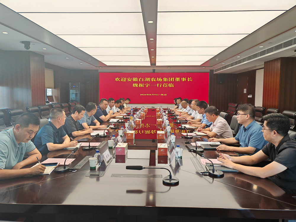 •        8月9日,安徽白湖農場集團董事長魏振宇一行到蘇墾農發考察交流。集團黨委委員,蘇墾農發總裁丁濤出席座談會。