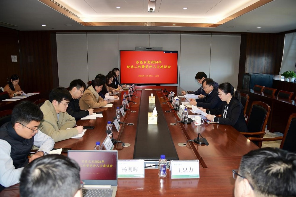 •        11月29日上午,蘇墾農發召開2024年統戰工作暨黨外人士座談會,民建會員、農工民主黨員、無黨派人士等10名駐寧統戰成員代表共聚一堂、共話發展。