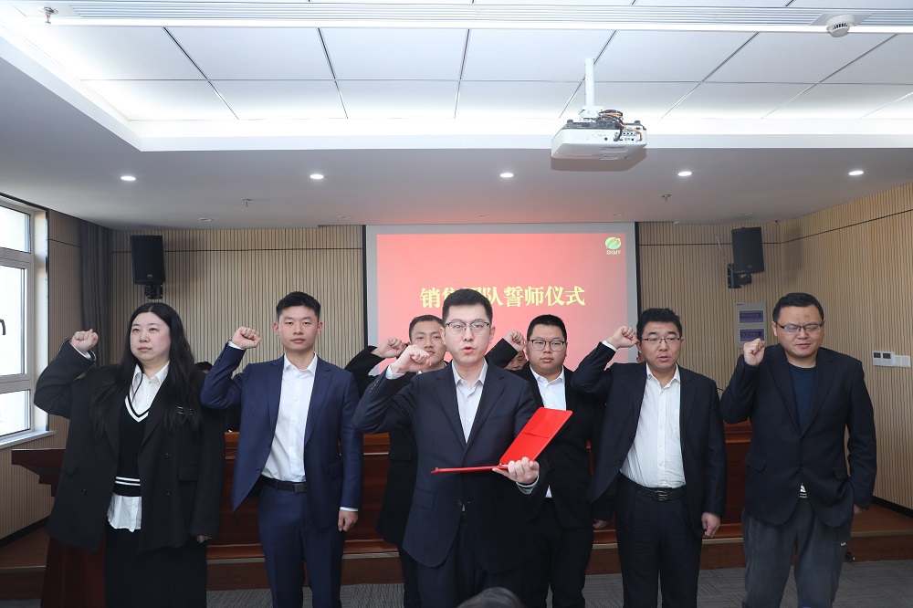 會上,3位營銷單位負責人做了表態發言。5大銷售中心、電商公司、企業用糧事業部負責人與公司總經理簽訂了2025年銷售目標責任狀。各銷售團隊依次上臺,進行了莊嚴宣誓。