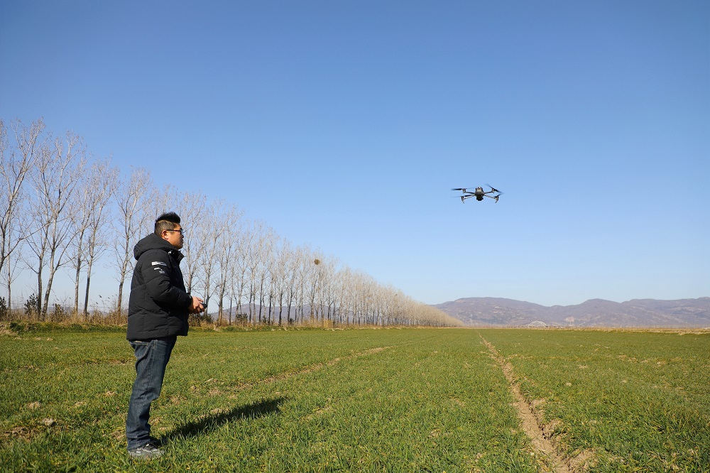 在西洋生產(chǎn)區(qū)20大隊(duì),隊(duì)長(zhǎng)魏峰正在使用無(wú)人機(jī)進(jìn)行智能巡田。“近期受冷空氣影響,氣溫持續(xù)下降,利用無(wú)人機(jī)巡田可以全方位、無(wú)死角地把麥田圖像拍攝下來(lái),便于后期科學(xué)精準(zhǔn)地開(kāi)展施肥、灌溉、除草等作業(yè),減少用工成本,提高作業(yè)質(zhì)量,1個(gè)人1天時(shí)間便可完成1萬(wàn)畝小麥巡田工作,田間管理變得既高效又輕松。”魏峰介紹道。