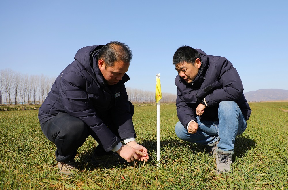 在21大隊(duì)早茬小麥田,農(nóng)技人員深入田間地頭,查看土壤墑情和麥苗長(zhǎng)勢(shì),仔細(xì)清點(diǎn)當(dāng)前小麥葉齡、群體莖蘗數(shù)等,并做好標(biāo)記。生產(chǎn)區(qū)副主任龍厚元說(shuō):“西洋生產(chǎn)區(qū)種植小麥15000余畝,設(shè)立定點(diǎn)跟蹤調(diào)查點(diǎn)位21個(gè)。通過(guò)定點(diǎn)跟蹤調(diào)查,可以精準(zhǔn)掌握小麥每個(gè)生育時(shí)期的群體莖蘗動(dòng)態(tài)和生長(zhǎng)過(guò)程中發(fā)生的病蟲(chóng)害,便于及時(shí)制定田間管理措施,為夏糧增產(chǎn)豐收打下堅(jiān)實(shí)基礎(chǔ)。”