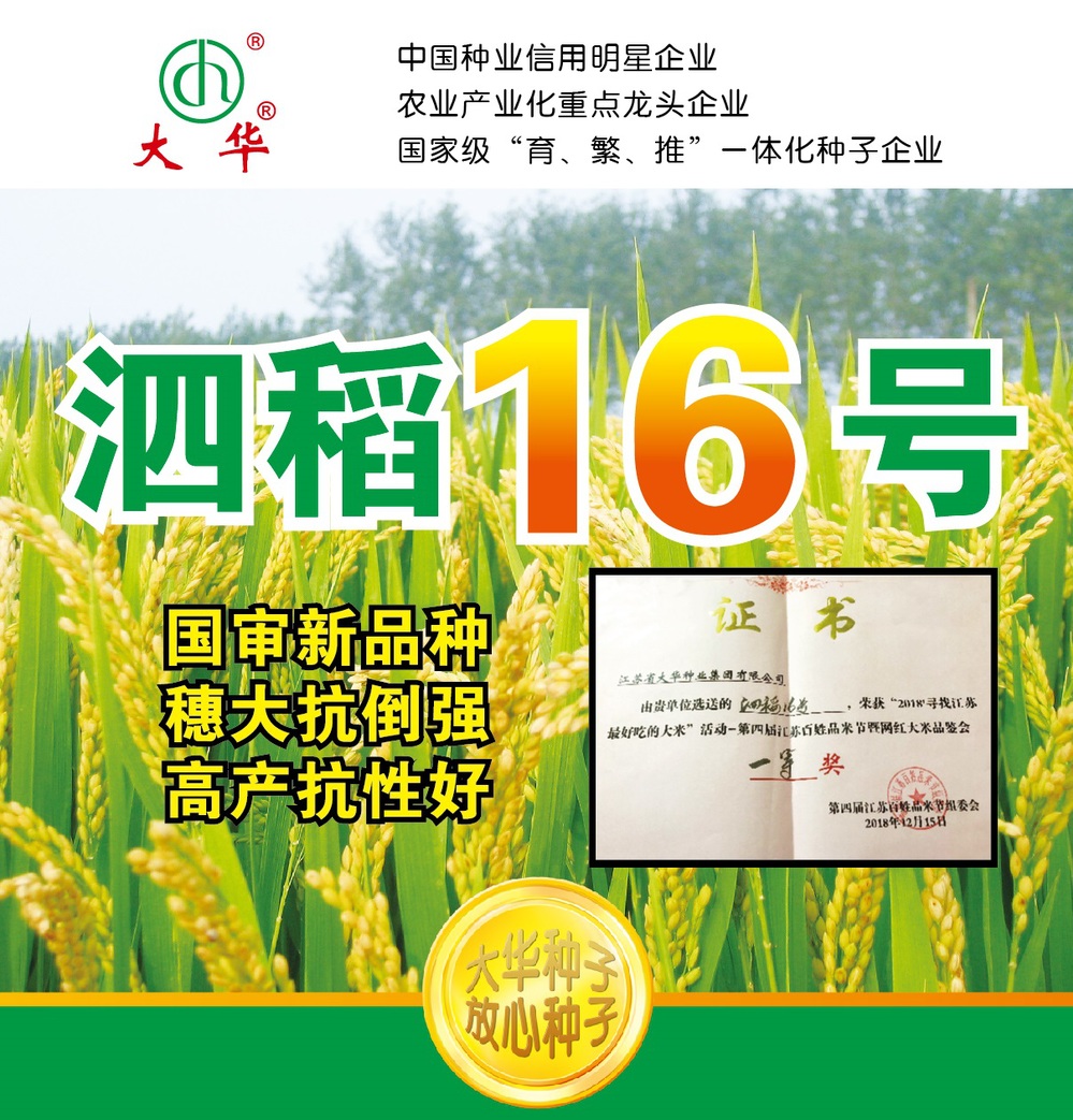 大華種業(yè)現(xiàn)階段主營常規(guī)稻麥種子,同時大力發(fā)展雜交玉米、雜交水稻種子經(jīng)營。公司現(xiàn)有“大華牌”水稻種子、小麥種子、大麥種子3個“江蘇省名牌產(chǎn)品”,2012年“大華”商標(biāo)被國家商標(biāo)局認(rèn)定為“中國馳名商標(biāo)”。當(dāng)前,公司在營各類農(nóng)作物品種40多個,其中,常規(guī)水稻主推華粳5號、華粳9號、連粳13、揚農(nóng)香28、泗稻16、大華香糯、連糯1號等高產(chǎn)優(yōu)質(zhì)品種;小麥主推華麥5號、華麥8號、華麥1028、鎮(zhèn)麥168、鎮(zhèn)麥10號、揚麥29、揚輻麥10號、鄭麥1860等高產(chǎn)優(yōu)質(zhì)品種;玉米主推蘇玉34、大華1146、蘇玉糯602等品種。